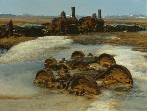 La fiebre del oro llevó la prosperidad a estas tierras heladas y grandes oleadas de mineros se asentaron principalmente en Juneau, Fairbanks y Nome. Este es el lugar donde se asienta el cementerio de los trenes de la tundra. El punto exacto donde tres locomotoras de vapor de 1880, que sirvieron en las líneas de Nueva York, permanecen en un cementerio de hierros oxidados. Las máquinas, de 23 toneladas de peso cada una, eran del tipo 0-4-4 Forney.