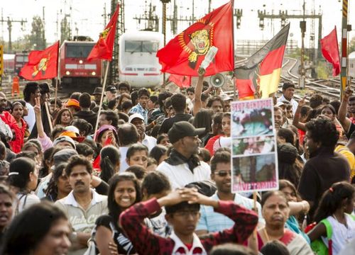 «Guerra sin testigos en Sri Lanka. Detengan la masacre de los tamiles» fue uno de los lemas que mostraron los concentrados quienes, a través de megáfonos, clamaban: «Queremos la paz. Queremos un estado propio» y «Alemania, ayúdanos». La guerrilla tamil anunció hoy el cese unilateral de los combates ante el derramamiento de sangre en el norte de Sri Lanka. Esa minoría empuñó las armas en 1983 en una guerra abierta contra el Ejército de Sri Lanka para conseguir un Estado tamil que ha provocado más de 70.000 muertes. El alto el fuego declarado entre 2002 y 2008 no sirvió para alcanzar una solución negociada.