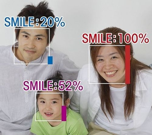El ‘sonrisómetro’ (Omron Demos Facial Recognition Technology) es un dispositivo similar a una cámara digital, que puede ser instalado en un PC o en una pared, y dispara fotos de los trabajadores. Las fotos van pasando a un software que evalúa los diferentes movimientos en la cara, como los de las esquinas de la boca o el rabillo de los ojos. Al final, se obtiene la llamada «puntuación sonrisa».