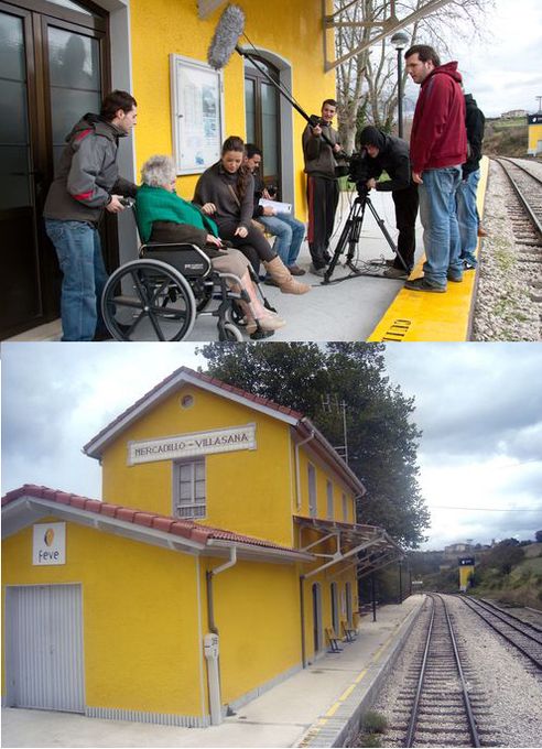 Una película donde el tren se apunta como un elemento esencial y en la que, sin embargo, no aparece ni tan siquiera una máquina, aunque las vías y la vieja estación de Mercadillo (Villasana de Mena no tienen tren ni tranvía) evocan el efecto aparente de la presencia del ferrocarril. Mercadillo es una de las estaciones más modestas de la línea, que dividió sus edificios en tres clases. Salvo Balmaseda, Mortaporquera y La Robla, las estaciónes de La Robla tienen un carácter muy modesto, verdaderamente industrial. Todas las edificaciones fueron pintadas en la época de la construcción de la línea general, en un color achocolatado, poco a poco modificado en cada estación de forma más o menos variada. Concebida en sus días como una estación de segunda clase, contó siempre con dos pisos en su edificio singular y coqueto, tal y como ahora lo conocemos, y que en el cortometraje ocupa un lugar destacado. En 1923 se añadió un depósito de agua metalizado.