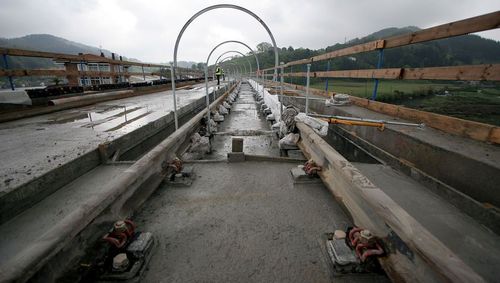 De los 17 vanos que sostienen el viaducto, 11 ya han sido ejecutados y 4 cimbrados (únicamente faltan por cimbrar los 2 primeros vanos del lado Zarautz. Por otra parte, se ha iniciado el montaje de la vía en placa sobre el viaducto.