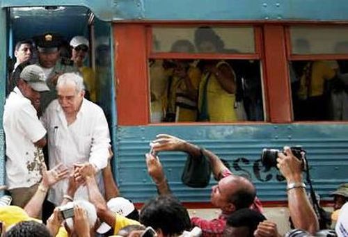 A través de las plantaciones bananeras, el tren recorrió lentamente los 70 kilómetros que separan a la Capital del Magdalena de Aracataca. A lo largo de la ruta cientos de personas se volcaron para saludar al escritor y darle la bienvenida al tren, el mismo que no veían hacía 35 años. Fue todo un acontecimiento. Gabo se bajó y recorrió parte de su pueblo, en medio de la ‘nube’ de cámaras, micrófonos y grabadoras de periodistas nacionales, internacionales y de la región.