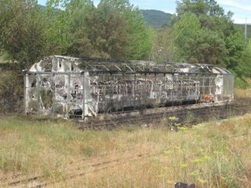El vehículo (FE 591-557-4 + FRC 524) se encontraba a la entrada de Barruelo dentro una cobertura de plástico que, junto con el resto de elementos inflamables que conformaban el ferrobús, ardieron completamente inhabilitando la labor de los bomberos. El ferrobús llevaba varios años inutilizado, al parecer porque la vía por la que debía circular cruzaba con el trayecto de Feve.