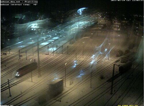 En color. Sin infrarrojos y en perfecta definición, aunque no a todas horas. La webcam de Plattling lleva unos días transmitiendo las imágenes de la estación alemana a todo color, con lo que la belleza de los planos nocturnos se realza considerablemente. Más estos días cuando el manto blanco de la nieve cubre las vías, trenes e instalaciones de la terminal situada al sur del país, a pocos kilómetros de las fronteras checa y austriaca y en el extremo sur del Bosque de Baviera.