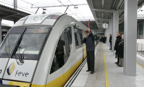 Gijón celebra la entrada en servicio de la nueva estación de Feve. El primer tren entró Sanz Crespo, en medio de una gran expectación, a las 12.24 horas del pasado domingo. Una flamante unidad de la serie 2700, con motor diésel de última generación, conducida por Manuel Barrio, uno de los maquinistas más veteranos de la compañía, entraba ante la mirada de cientos de ojos en la terminal de la operavora de vía estrecha. El tren procedía de Oviedo-Trubia y llevaba cuatro pasajeros.