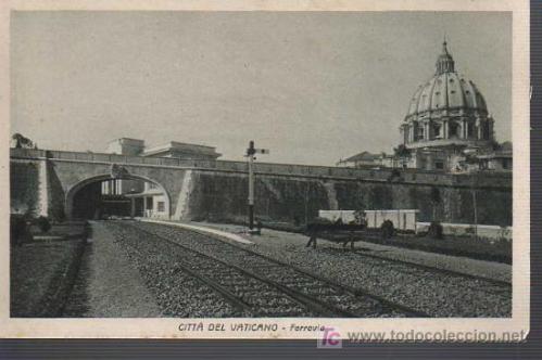 La línea y la estación ferroviarias del Estado de la Ciudad del Vaticano se construyeron en virtud del Pacto de Letrán de 1929, que reconcilió a la Sante Sede con el Estado italiano. Al verla en construcción, el Papa Pío XI la describió como “la estación mas bella del mundo.” Está decorada lujosamente con ocho columnas de mármol verde tallados en el mismo bloque. El Papa Pío XI nunca viajó en la línea y nunca se llegó a construir el tren que había previsto.