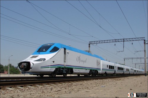 La mítica ruta de la seda tiene presencia española. Los dos trenes vendidos a Uzbekistán, cuya serie ha sido bautizada por UTY con el nombre de ‘Afrosiyob’ (asentamiento previo a Samarkanda), están compuestos de dos cabezas motoras y nueve coches, uno de ellos cafetería. Pueden alcanzar velocidades en torno a los 250 kilómetros por hora y emplean el ancho de vía ruso (1.520 milímetros). Todo con la tecnología de la patente española.