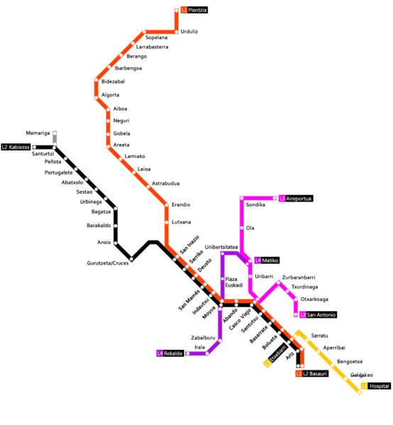 Y ya se habla de una línea 4 (Moyúa-Rekalde) cuyo trazado preliminar pretende conectar la estación de Moyua, que actualmente da servicio a las líneas 1 y 2 con el barrio de Recalde, con dos paradas intermedias: Zabalburu, donde ya existe una estación de Renfe Cercanías, e Irala,7 aunque se encuentra en fase de estudio y está expuesta a modificaciones sustanciales.