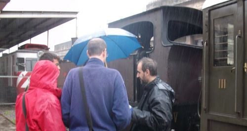 La gente del tren quiso transmitir a Juanjo Olaizola su pesar y malestar por todo lo que está aconteciendo en torno a su figura. Y él, sin perder la sonrisa, como casi siempre, parecía el menos afectado de todos los que acudimos a celebrar la fiesta del Museo Vasco del Ferrocarril. Mientras el cielo lloraba y empapaba máquinas, coches y pasajeros, Juanjo Olaizola, vestido con el sempiterno mono azul de trabajo (apenas le recuerdo vestido de calle), enfundado en sus guantes, abría y cerraba válvulas de sus queridas máquinas para deleitar a sus visitantes con un recorrido por las vías del antiguo tren del Urola. Las locomotoras disparaban al aire fuertes volutas de humo, haciéndose más presentes que nunca, como para recordar a propios y extraños que están ahí, vivas, poderosas, en perfecto estado de forma. Y todo porque Juanjo Olaizola se ha empeñado en que eso sea así; y ha convencido a unos cuantas entusiastas del tren para que sigan sus pasos y preserven de la herrumbre y el abandono estas poderosas máquinas, verdaderas joyas de la institución de Azpeitia.