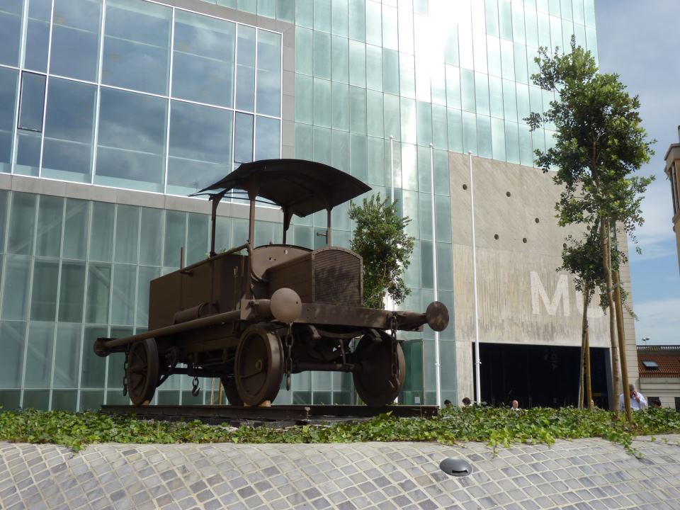 Como una ‘maceta’ más, a la intemperie. Curiosa elección la del Museo de la Ciencia y Teconología de La Coruña para dar entrada a su muestrario. A simple vista podía parecer un camión, como una dresina, pero en detalle, es algo más que eso. Este vehículo de gran tamaño instalado en la plaza que da acceso al Muncyt fue utilizada en la azucarera ‘San Isidro’, en la vega de Granada, para el movimiento de vagones y pretende ser un anticipo de lo que el visitante podrá encontrar en el interior del edificio. Mezcla de tractor, camión y tren, esta ‘Quimera Ferroviaria’, este híbrido tuvo su protagonismo en las fábricas granadinas, donde se trabaja la remolacha y la extracción de azúcar.