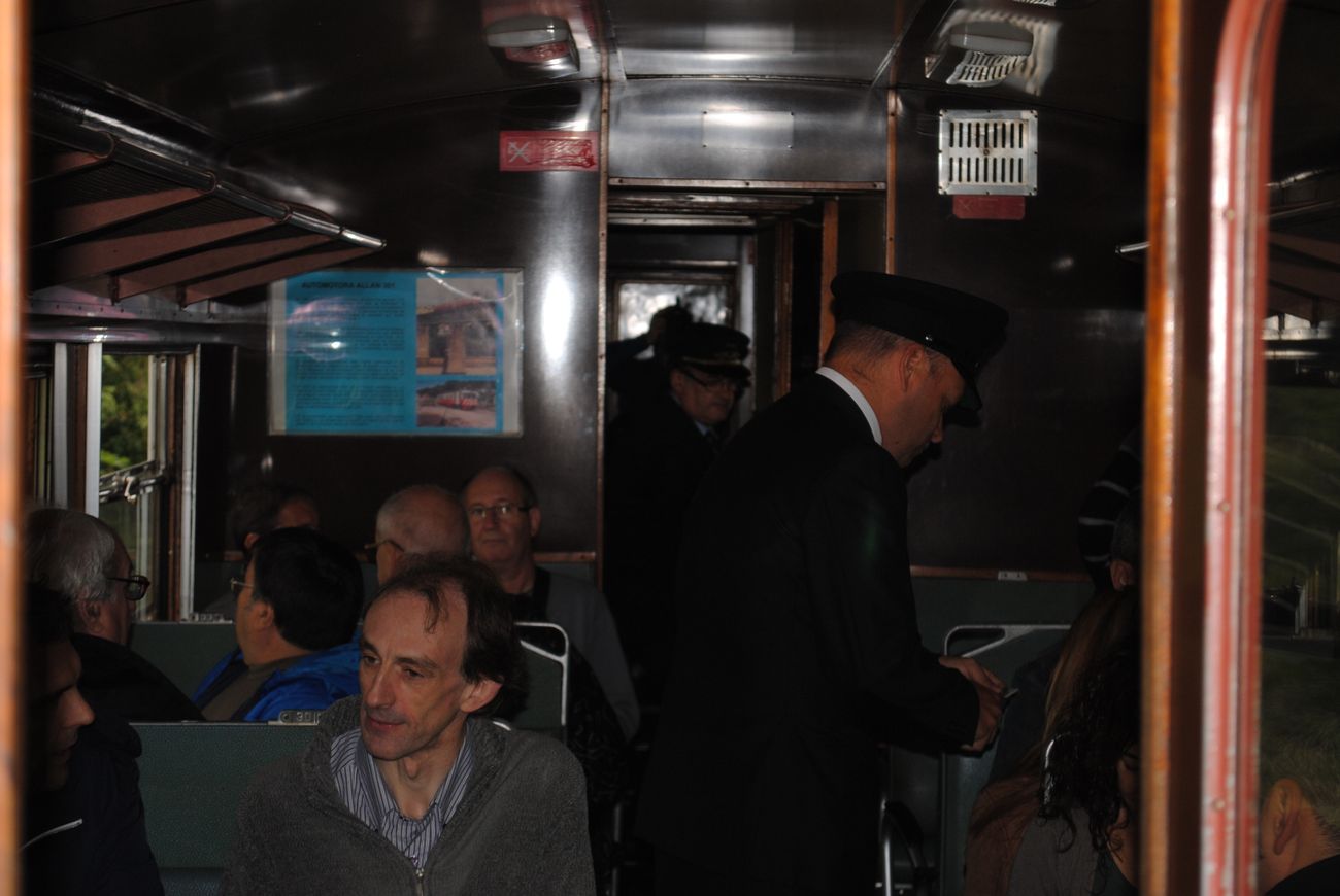El tranvía del museo también transportaba a los viajeros hasta cocheras en varias circulaciones interiores, mientras los visitantes fotografiaban cada palmo del museo. Todo en un ambiente muy ferroviario donde no podían faltar los revisores, que ‘picaban’ en cada viaje los billetes de los viajeros.