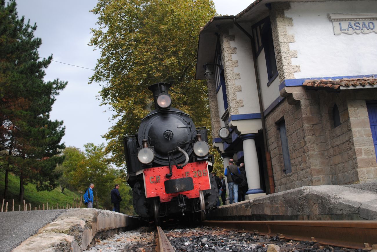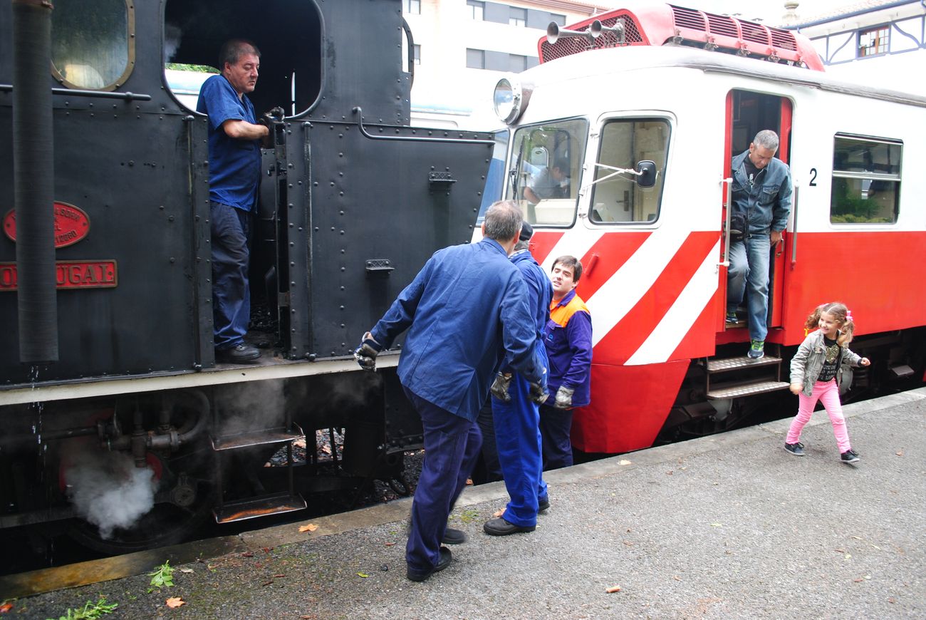 La salida de los trenes históricos en servicio de viajeros se efectuaron a las 11.30 horas. El automotor diésel-eléctrico Allan 301 de los Ferrocarriles Portugueses (1853)) trasladó a un nutrido grupo de visitantes hasta Lasao. Tras una breve espera llegó hasta allí la locomotora de vapor ‘Portugal’ (1913), que en un simulacro de avería remolcó a la diésel hasta la estación de Azpeitia.