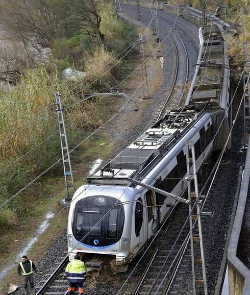 Un desprendimiento provoca el descarrilamiento de una unidad de Euskotren en Etxebarri