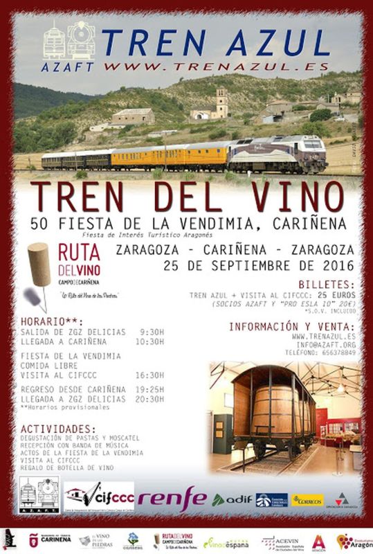 Publicado septiembre 7, 2016 en 900 × 1336 en El ‘Tren Azul’ de la Azaft se incorpora a la Fiesta de la Vendimia de Cariñena que celebra su 50ª edición