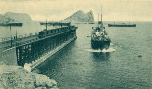 Es uno de los cinco embarcaderos británicos que todavía sobreviven en España (los otros cuatro son Tharsis y Riotinto en Huelva; Alquife en Almería y Astillero en Santander). En las escasas referencias publicadas en España sobre este muelle, se dice que su autor fue el ingeniero español Domingo Muguruza y que el director de la obra fue Gustave Gillman. La construcción del embarcadero obligó a realizar obras complementarias como un enlace entre la estación de Águilas y el embarcadero por un ramal que cuenta en su recorrido con un puente de hierro que salva la rambla de Las Culebras y depósitos superpuestos a los túneles de entrada y salida a la plataforma para almacén del material.