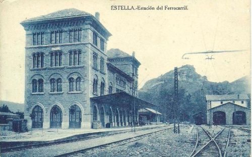 La estación de Estella, construida en un estilo neo-románico que se nutre del palacio de los duques de Granada de Ega, es la más bonita y costosa del conjunto que forman los edificios de viajeros del tramo de Estella a-Vitoria (la de la capital alavesa, por ejemplo, costó 41.474,68 pesetas y la navarra 478.243,82 pesetas), que se levantan con exquisito gusto en estilo «old english», y se distancian considerablemente de las sencillas formas habituales de la arquitectura ferroviaria. Como curiosidad, conviene señalar que Granada de Ega, además de ser el nombre que se da al palacio que hoy se conoce como de los Reyes de Navarra, es la denominación de un antiguo señorío situado en las proximidades de Arquijas.