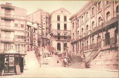 La orografía de Bilbao condiciona notablemente el desarrollo de su red ferroviaria. Y uno de los ejemplos más notables lo tenemos en el Ferrocarril de Bilbao a Lezama. Autorizada su construcción en 1891, la mayor parte de las obras están concluidas en 1894, lo que permite que, el 2 de mayo de dicho año, entre en servicio la práctica totalidad del nuevo trazado, entre la estación de Begoña y Lezama. Únicamente queda por construir el acceso al corazón de la capital vizcaína, mediante un duro y sinuoso trazado, con pendientes de hasta 38 milésimas, que permite el rápido descenso desde Begoña hasta el corazón del casco histórico de la ciudad.
