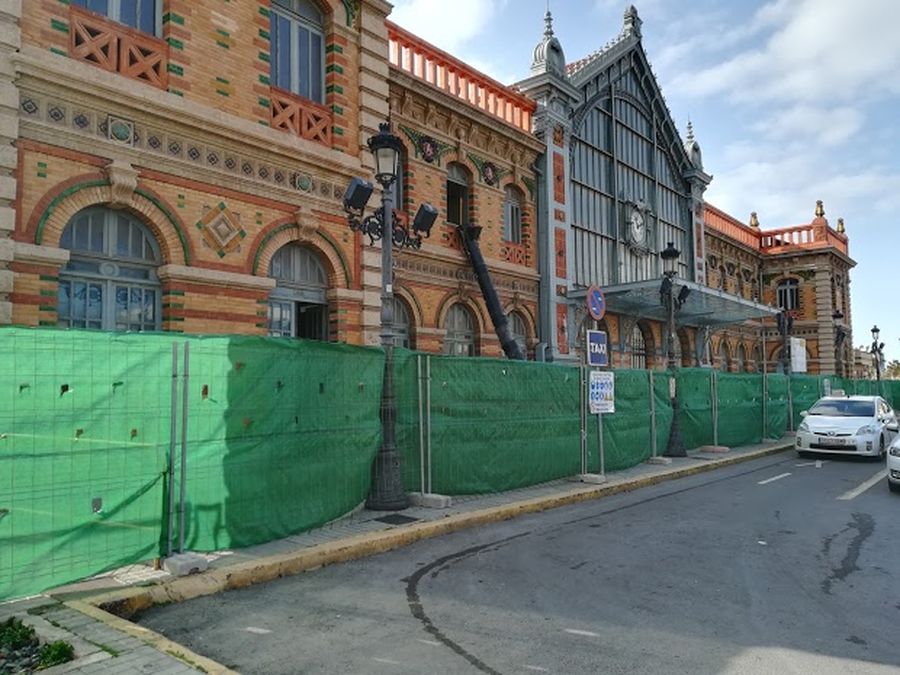 La Guerra Civil afecta a la integridad del edificio; la balaustrada de ladrillos que contornea el remate superior debe ser reconstruida tras el bombardeo de la aviación alemana. Debajo de la estación se improvisan dos refugios antiaéreos, cuyas entradas quedan al descubierto durante la remodelación de 1988 a-1991 con cargo al Plan de Modernización y Equipamiento de Estaciones, cuando se consigue restaurar estos casi 600 m² de superficie construida. Los trabajos efectuados permiten resaltar algunos de sus elementos característicos e históricos y ponen de manifiesto, en general, el aire afrancesado de la estación, la luz meridional de sus decorativas cerámicas de vivos colores, rojos, verdes y azules, el ocre de sus paredes rebordeadas por la estructura metálica de tonos verdosos y grisáceos. Se recupera el reloj sobriamente enmarcado en labor de hierro, las carenas acristaladas en el interior de vestíbulo y un mural cerámico de Francisco Cañadas. En el curso de las tareas de remozamiento, queda claramente esclarecido que la firma constructora de la cubierta metálica lleva el sello de Fives-Lille.