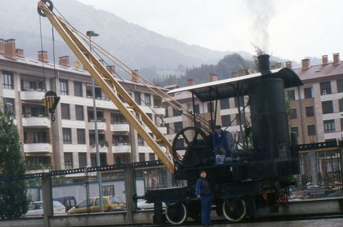 La silueta de esta grúa es bastante familiar en las grandes fábricas del País Vasco desde finales del siglo XIX hasta la década de los sesenta del siglo XX. El artilugio funciona con un motor de vapor que también sirve de tracción para trasladarse sobre las vías que conecta las zonas de la fábrica. Cuando deja de prestar servicio, no pasa al desguace, como muchas de sus congéneres; los operarios de la factoría vizcaína, a caballo entre San Salvador del Valle (Trapagaran) y Sestao, que se encargan de encender el horno y su caldera vertical, la ponen a funcionar a diario para descargar los camiones que entran a la planta. Eso le permite llegar a ser inventariada en la década de los 90 por la Asociación de Patrimonio Histórico Industrial.