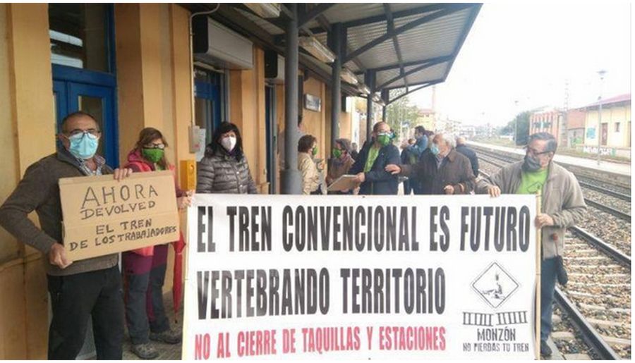 El movimiento vecinal ‘Aragón no pierdas tu tren’ volverá a manifestarse en las estaciones el próximo domingo, 20 de junio, para seguir defendiendo el mantenimiento de los servicios ferroviarios en la comunidad autónoma, tras escuchar al consejero de Vertebración del Territorio, José Luis Soro, confirmando su decisión de dejar de financiar los trayectos de tren y sustituirlos por autobuses desde el próximo 1 de julio. El portavoz del movimiento en Monegros, Raúl Rivarés, ha calificado de «absurda» la idea de sustituir los trenes que se pierdan con autobuses porque nunca podrán prestar el mismo servicio. Ha rechazado, asimismo, la afección medioambiental que supondría la puesta en marcha de los mismos. A su entender, la propuesta del Departamento de Vertebración del Territorio, Movilidad y Vivienda del Gobierno de Aragón «choca frontalmente» con el discurso de la sostenibilidad que piden al ciudadano.