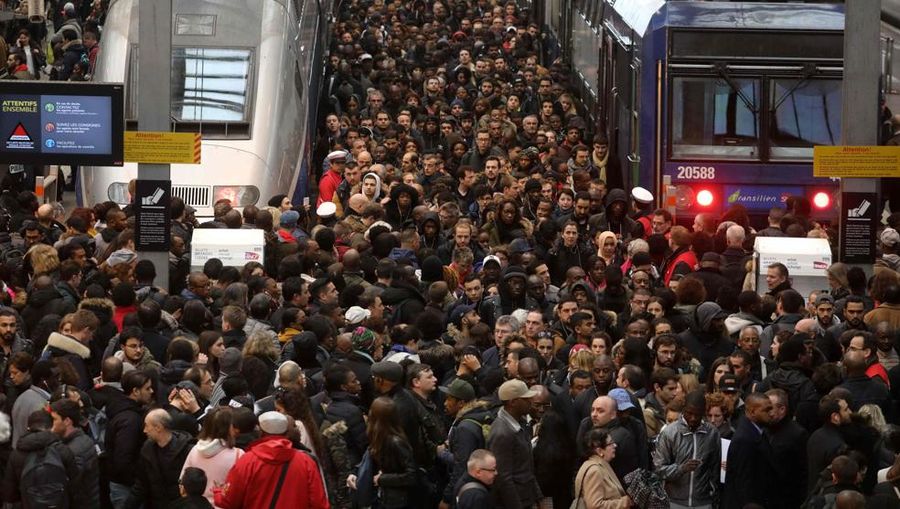 Los franceses volvieron a vivir una jornada caótica porque, pese a que el número de huelguistas se redujo (el 24,9 % frente al 29,7 % del pasado día 4), fue de tres cuartos entre los maquinistas, lo que impidió que circularan la mayor parte de los trenes. Es una estrategia clásica en Francia en huelgas que se anuncian largas concentrar los paros en los puestos claves para que la mayor parte de los trabajadores no se vean penalizados en sus salarios, mientras se crean fondos subsidiarios para ayudar a los huelguistas. Solo circuló un tren de alta velocidad de cada cinco, uno de cada tres regionales y uno de cada cinco ferrocarriles clásicos de larga distancia. Se anuló únicamente una de cada cuatro conexiones internacionales, aunque en el caso de España solo se mantuvo una de cada cinco previstas.