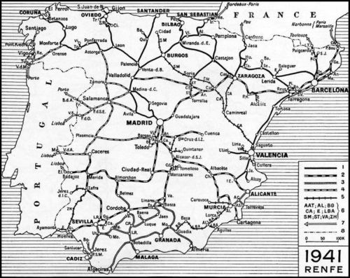 .-80 años de la creación de Renfe (la R.E.N.F.E). Aunque no sea la ‘misma empresa’, se cumplen ocho décadas de la creación de este organismo ferroviario. El régimen crea la Red Nacional de Ferrocarriles Españoles (R.E.N.F.E) fue rehabilitar el ferrocarril español, gravemente dañado como consecuencia de la Guerra Civil, ante la situación de quiebra económica de las empresas ferroviarias que hasta entonces habían explotado la red. En el momento de su creación contaba con 12.401 kilómetros de vía, apenas había recursos y era necesario unificar, por ejemplo, las señales (había cerca de 30 tipos distintos) y los reglamentos de circulación (entre las distintas compañías sumaban una veintena). Poco después de acabada la contienda bélica, se decidió compensar a los bancos que poseían las acciones de las grandes compañías ferroviarias y nacionalizar la red de ferrocarriles. De esta forma, se formalizó una idea anterior a la contienda (el Gobierno de la República ya había iniciado estudios y planes) para fortalecer el tráfico ferroviario y acabar con la dispersión de las líneas.